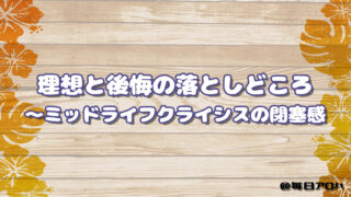 ☕人生のアフタヌーンティー 理想と後悔の落としどころ ~ミッドライフクライシスの閉塞感 ブログを始めてから、日々の生活に少しずつ彩りが戻ってきた。それでも時々、立ち止まってしまう瞬間がある。――あぁ、これが「ミッドライフクライシス」なんだな、と実感する。今日はその閉塞感について、自分なりに深堀りしてみたい。閉塞感の正体人生の折... 2025.09.15 ☕人生のアフタヌーンティー🤵♂️ミッドライフクライシス